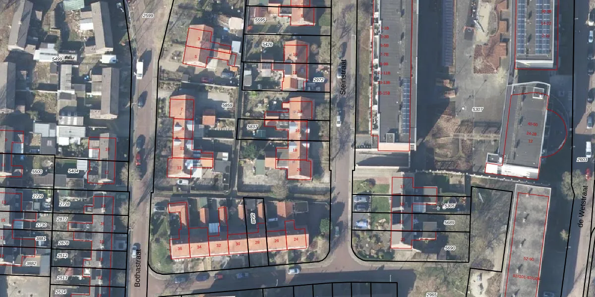 Het perceel waarop Steinstraat 18 staat heeft een oppervlakte van 4497 m². Dit is een zeer groot perceel. De perceeloppervlakte wordt geregistreerd door het Kadaster. Gedetailleerde informatie over de maten van dit perceel kunt u vinden in het rapport Kadastrale kaart met maatvoering van Steinstraat 18.