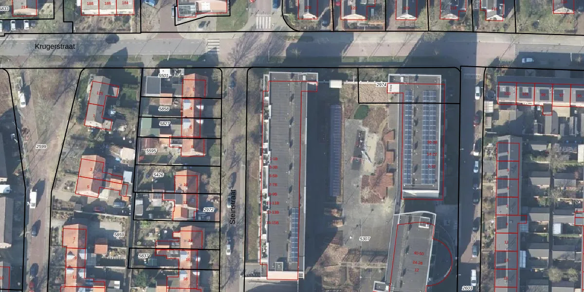 Steinstraat 5-B is gelegen op kadastraal perceel VSN02D5307. Deze kadastrale aanduiding is uniek en wordt gebruikt door het Kadaster om eigendomsrechten en andere zakelijke rechten vast te leggen. Het perceel maakt onderdeel uit van de kadastrale gemeente Vaassen.