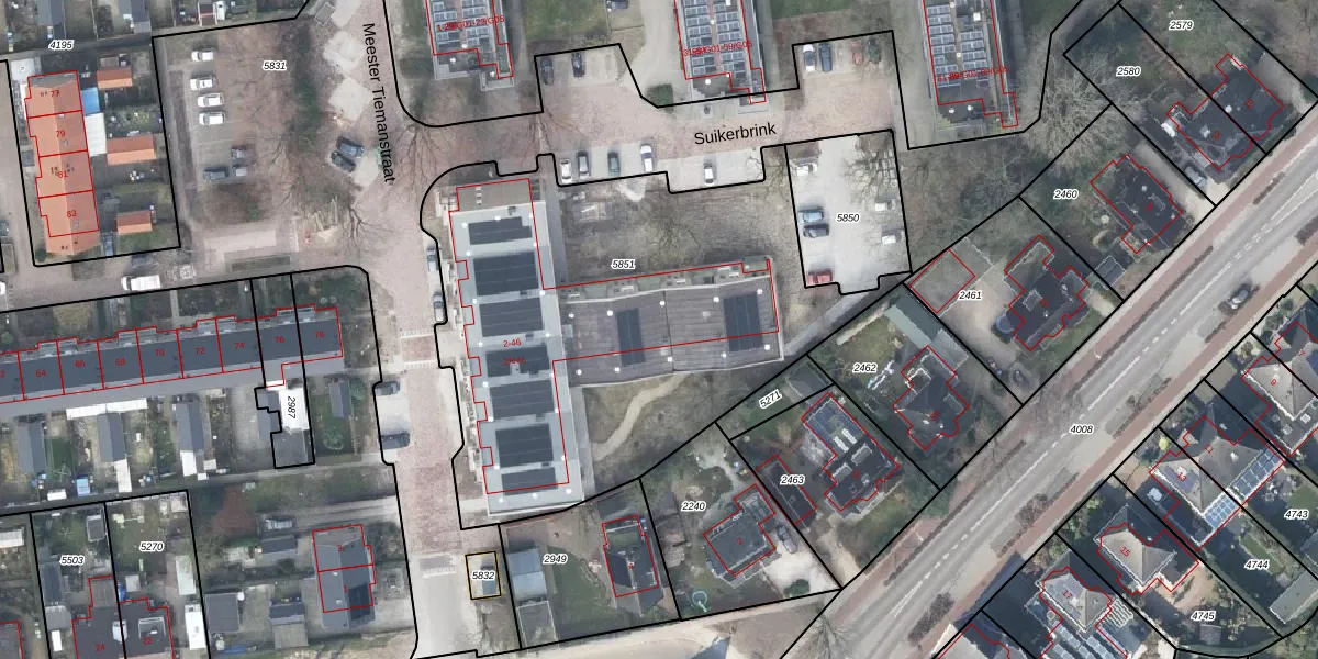 Suikerbrink 20 is gelegen op kadastraal perceel VSN02D5851. Deze kadastrale aanduiding is uniek en wordt gebruikt door het Kadaster om eigendomsrechten en andere zakelijke rechten vast te leggen. Het perceel maakt onderdeel uit van de kadastrale gemeente Vaassen.