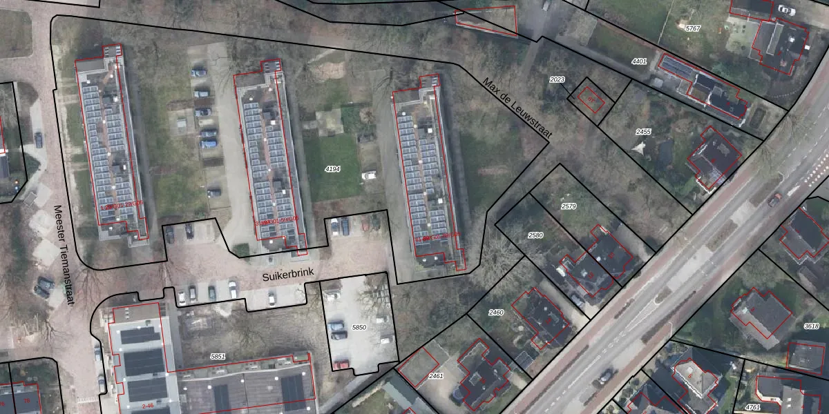 Het perceel waarop Suikerbrink 89-G04 staat heeft een oppervlakte van 5379 m². Dit is een zeer groot perceel. De perceeloppervlakte wordt geregistreerd door het Kadaster. Gedetailleerde informatie over de maten van dit perceel kunt u vinden in het rapport Kadastrale kaart met maatvoering van Suikerbrink 89-G04.