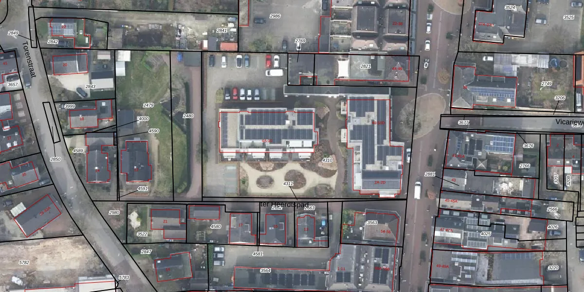 Het perceel waarop ter Heerdtspad 8 staat heeft een oppervlakte van 3043 m². Dit is een zeer groot perceel. De perceeloppervlakte wordt geregistreerd door het Kadaster. Gedetailleerde informatie over de maten van dit perceel kunt u vinden in het rapport Kadastrale kaart met maatvoering van ter Heerdtspad 8.