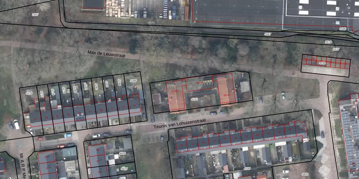 Het perceel waarop Teunis van Lohuizenstraat 79 staat heeft een oppervlakte van 978 m². Dit is een groot perceel. De perceeloppervlakte wordt geregistreerd door het Kadaster. Gedetailleerde informatie over de maten van dit perceel kunt u vinden in het rapport Kadastrale kaart met maatvoering van Teunis van Lohuizenstraat 79.