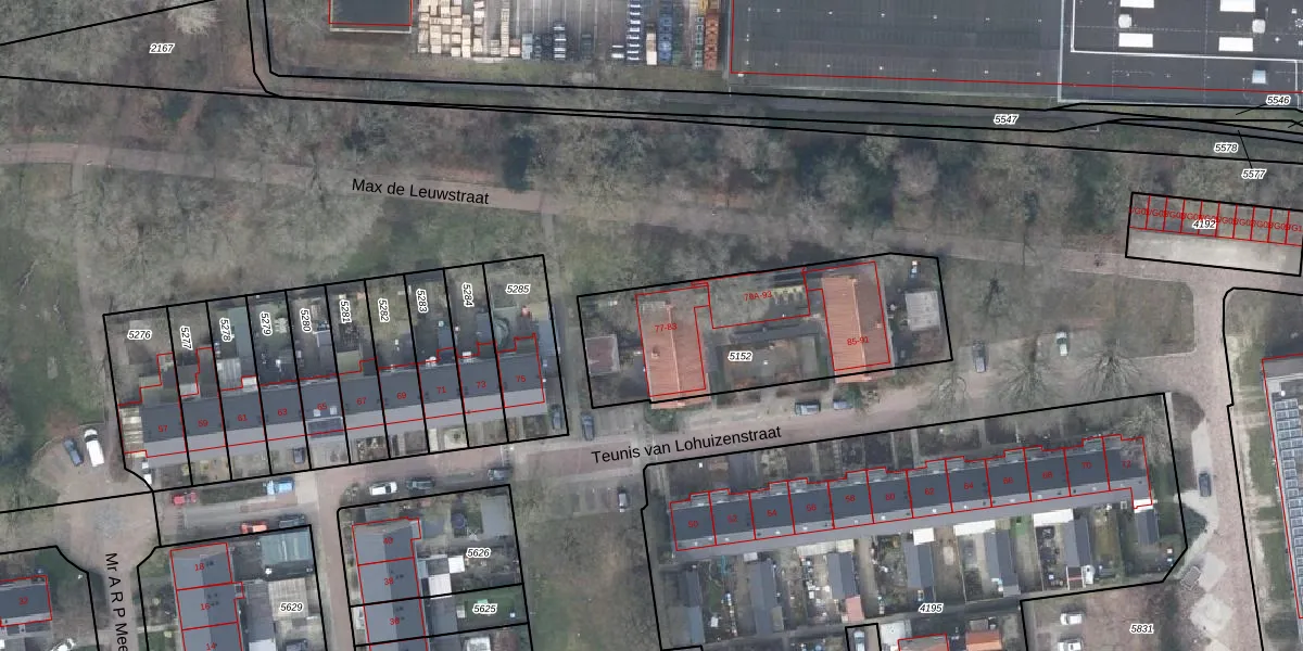 Het perceel waarop Teunis van Lohuizenstraat 83 staat heeft een oppervlakte van 978 m². Dit is een groot perceel. De perceeloppervlakte wordt geregistreerd door het Kadaster. Gedetailleerde informatie over de maten van dit perceel kunt u vinden in het rapport Kadastrale kaart met maatvoering van Teunis van Lohuizenstraat 83.