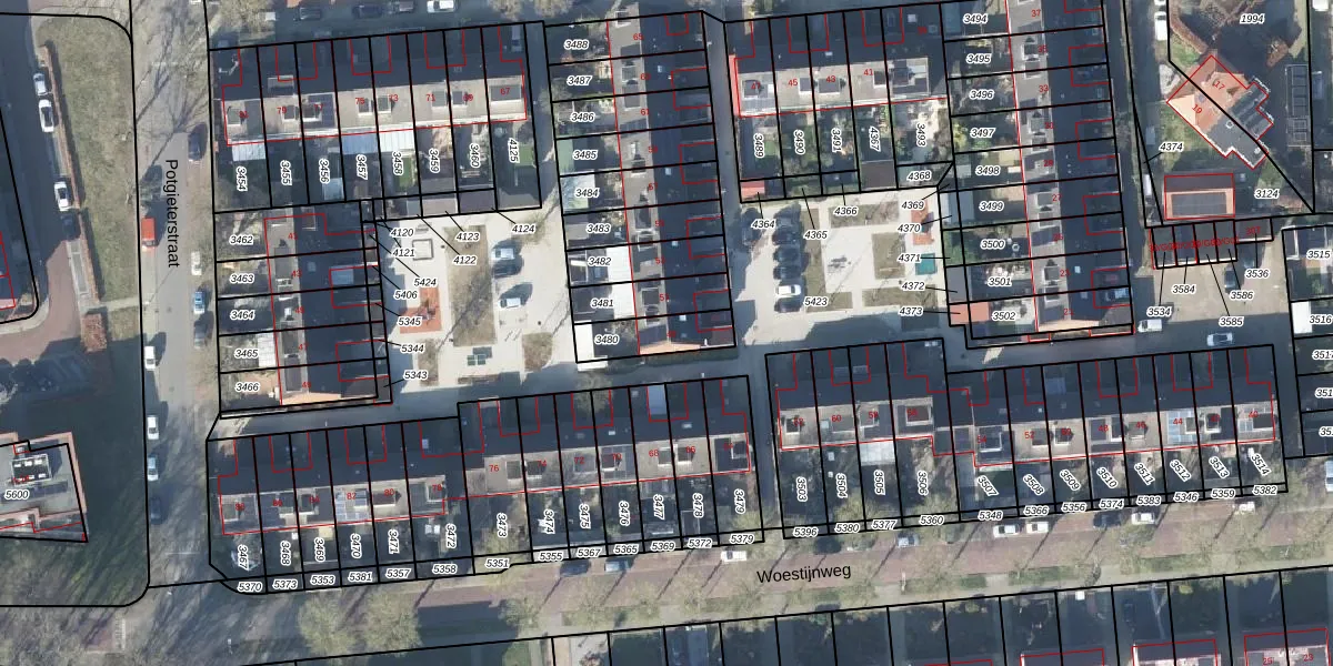 Gebruik de zoekbalk of klik op een perceel voor informatie over de adressen binnen dit perceel.