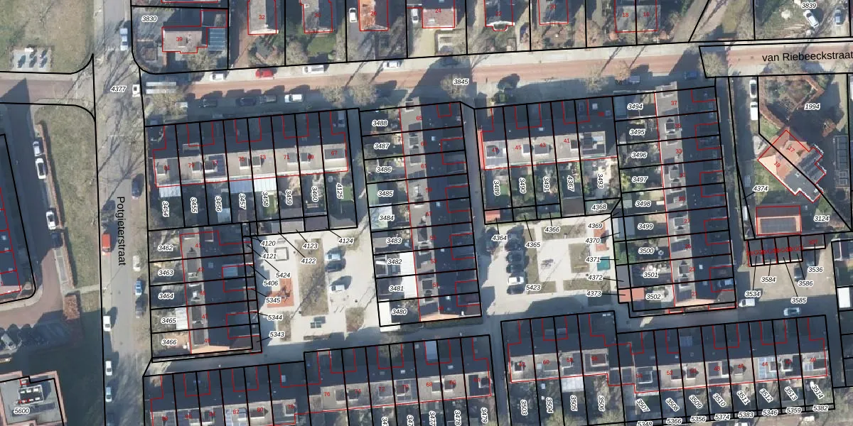 Gebruik de zoekbalk of klik op een perceel voor informatie over de adressen binnen dit perceel.