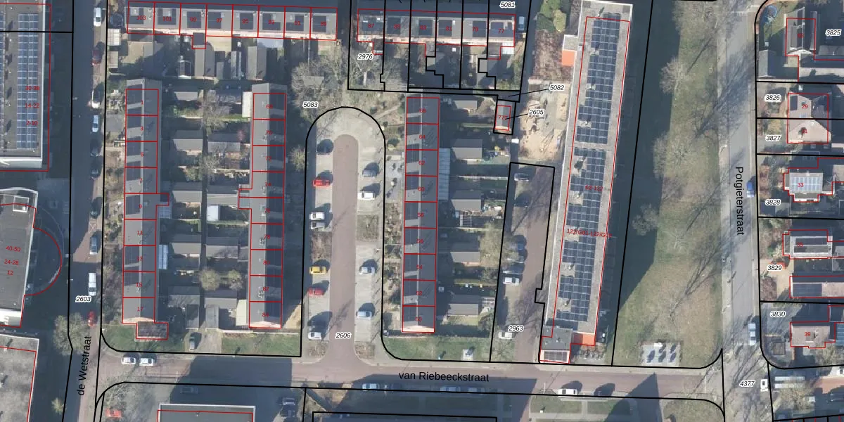 Het perceel waarop van Riebeeckstraat 58 staat heeft een oppervlakte van 8324 m². Dit is een zeer groot perceel. De perceeloppervlakte wordt geregistreerd door het Kadaster. Gedetailleerde informatie over de maten van dit perceel kunt u vinden in het rapport Kadastrale kaart met maatvoering van van Riebeeckstraat 58.