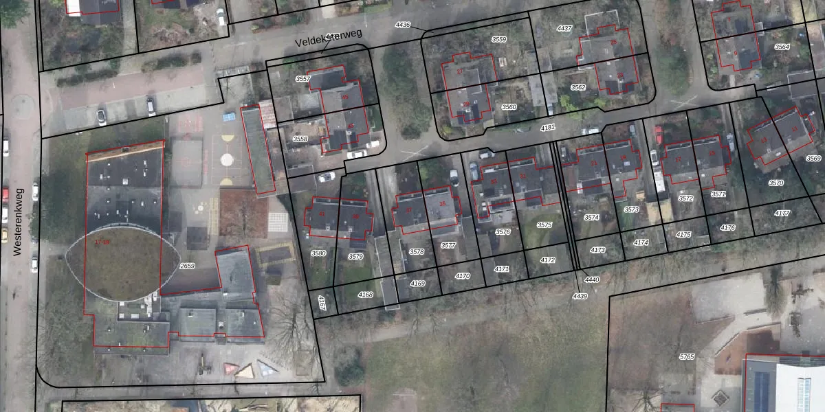 Het perceel waarop Veldeksterweg 37 staat heeft een oppervlakte van 277 m². Dit is een middelgroot perceel. De perceeloppervlakte wordt geregistreerd door het Kadaster. Gedetailleerde informatie over de maten van dit perceel kunt u vinden in het rapport Kadastrale kaart met maatvoering van Veldeksterweg 37.