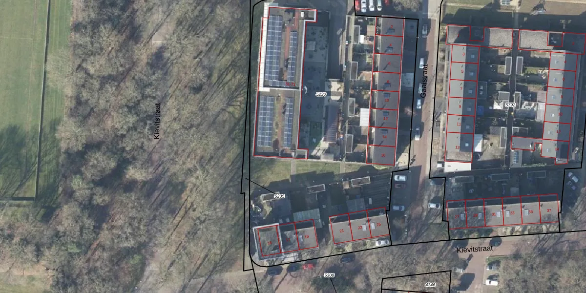 Het perceel waarop Vinkstraat 41 staat heeft een oppervlakte van 4555 m². Dit is een zeer groot perceel. De perceeloppervlakte wordt geregistreerd door het Kadaster. Gedetailleerde informatie over de maten van dit perceel kunt u vinden in het rapport Kadastrale kaart met maatvoering van Vinkstraat 41.