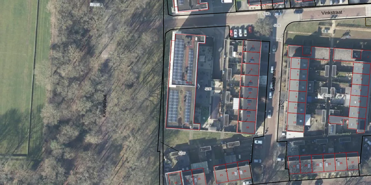 Het perceel waarop Vinkstraat 49 staat heeft een oppervlakte van 4555 m². Dit is een zeer groot perceel. De perceeloppervlakte wordt geregistreerd door het Kadaster. Gedetailleerde informatie over de maten van dit perceel kunt u vinden in het rapport Kadastrale kaart met maatvoering van Vinkstraat 49.