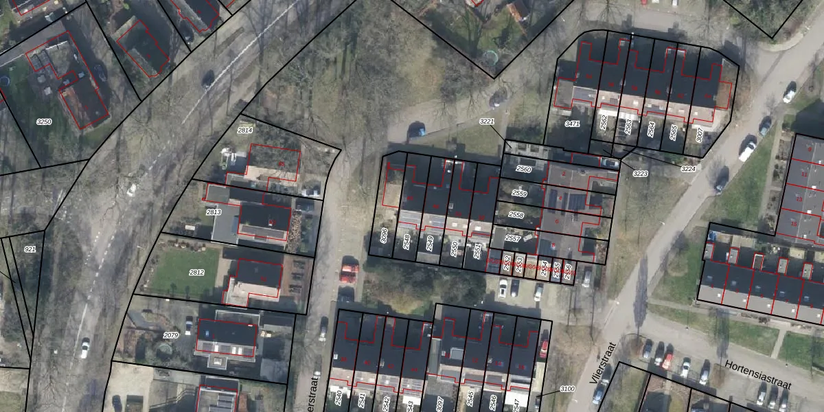Gebruik de zoekbalk of klik op een perceel voor informatie over de adressen binnen dit perceel.