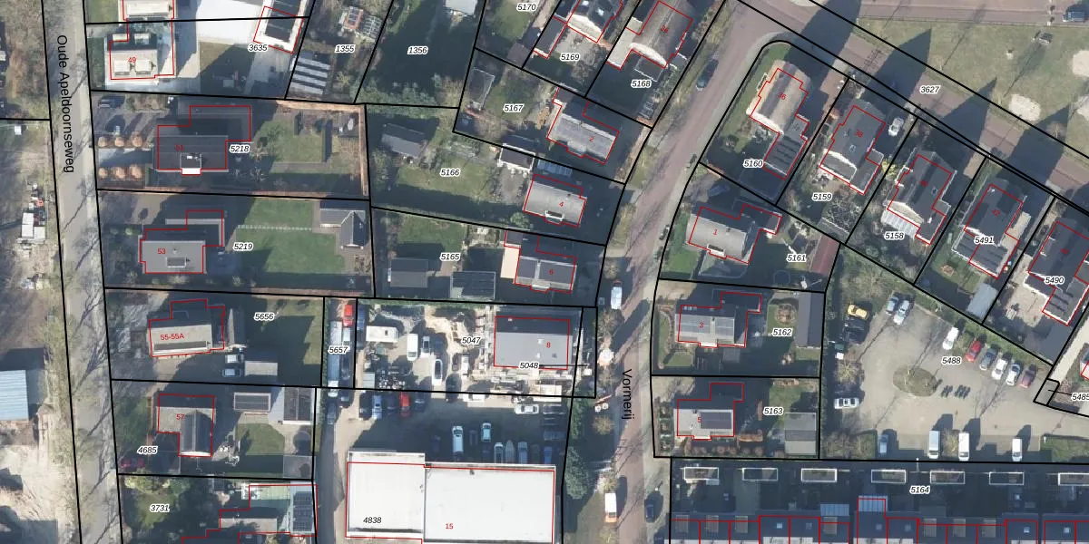 Het perceel waarop Vormerij 6 staat heeft een oppervlakte van 592 m². Dit is een groot perceel. De perceeloppervlakte wordt geregistreerd door het Kadaster. Gedetailleerde informatie over de maten van dit perceel kunt u vinden in het rapport Kadastrale kaart met maatvoering van Vormerij 6.