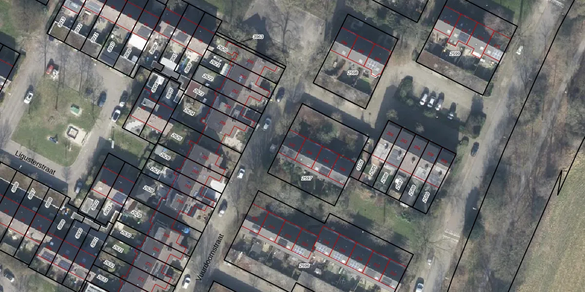 Het perceel waarop Vuurdoornstraat 192 staat heeft een oppervlakte van 677 m². Dit is een groot perceel. De perceeloppervlakte wordt geregistreerd door het Kadaster. Gedetailleerde informatie over de maten van dit perceel kunt u vinden in het rapport Kadastrale kaart met maatvoering van Vuurdoornstraat 192.