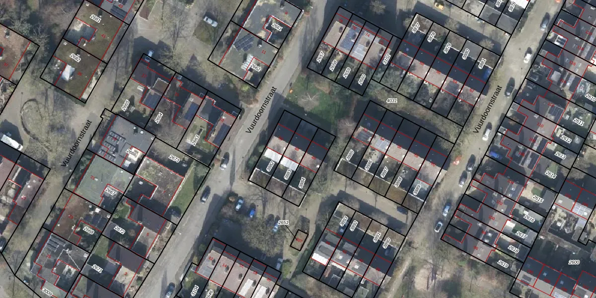 Gebruik de zoekbalk of klik op een perceel voor informatie over de adressen binnen dit perceel.