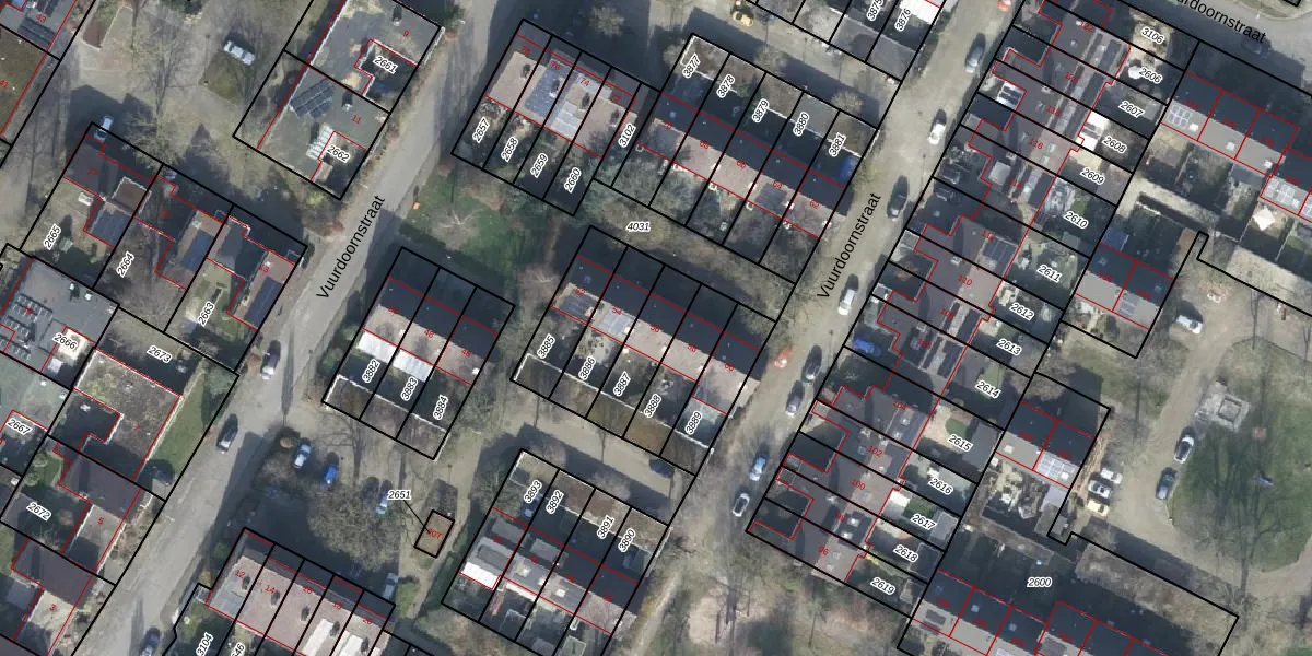 Gebruik de zoekbalk of klik op een perceel voor informatie over de adressen binnen dit perceel.