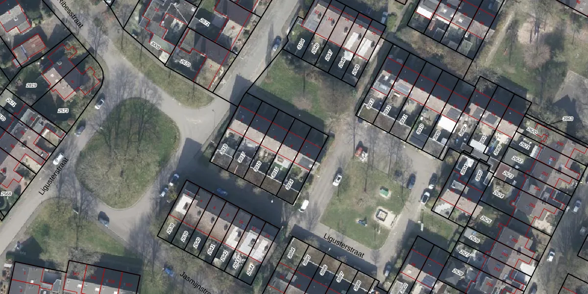 Gebruik de zoekbalk of klik op een perceel voor informatie over de adressen binnen dit perceel.