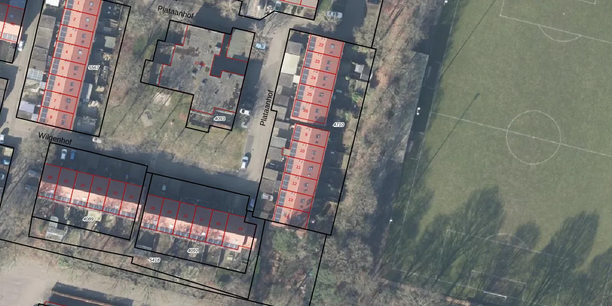 Het perceel waarop Wilgenhof 10 staat heeft een oppervlakte van 1695 m². Dit is een zeer groot perceel. De perceeloppervlakte wordt geregistreerd door het Kadaster. Gedetailleerde informatie over de maten van dit perceel kunt u vinden in het rapport Kadastrale kaart met maatvoering van Wilgenhof 10.