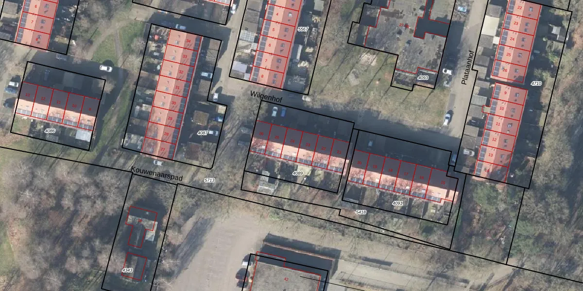 Het perceel waarop Wilgenhof 24 staat heeft een oppervlakte van 822 m². Dit is een groot perceel. De perceeloppervlakte wordt geregistreerd door het Kadaster. Gedetailleerde informatie over de maten van dit perceel kunt u vinden in het rapport Kadastrale kaart met maatvoering van Wilgenhof 24.