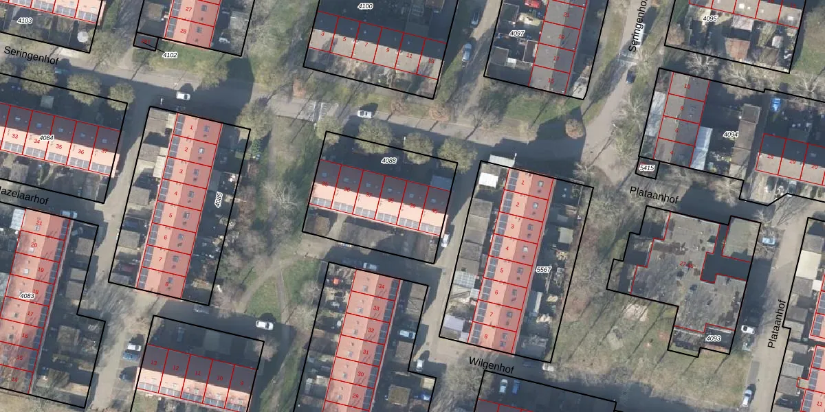 Het perceel waarop Wilgenhof 39 staat heeft een oppervlakte van 822 m². Dit is een groot perceel. De perceeloppervlakte wordt geregistreerd door het Kadaster. Gedetailleerde informatie over de maten van dit perceel kunt u vinden in het rapport Kadastrale kaart met maatvoering van Wilgenhof 39.