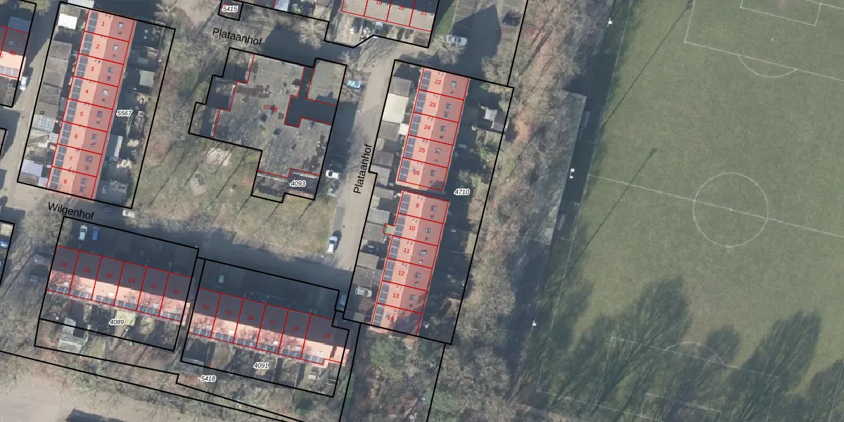 Het perceel waarop Wilgenhof 9 staat heeft een oppervlakte van 1695 m². Dit is een zeer groot perceel. De perceeloppervlakte wordt geregistreerd door het Kadaster. Gedetailleerde informatie over de maten van dit perceel kunt u vinden in het rapport Kadastrale kaart met maatvoering van Wilgenhof 9.