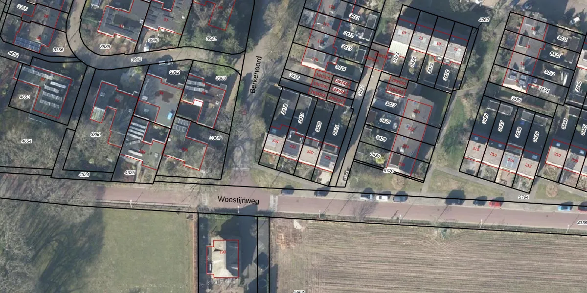 Gebruik de zoekbalk of klik op een perceel voor informatie over de adressen binnen dit perceel.