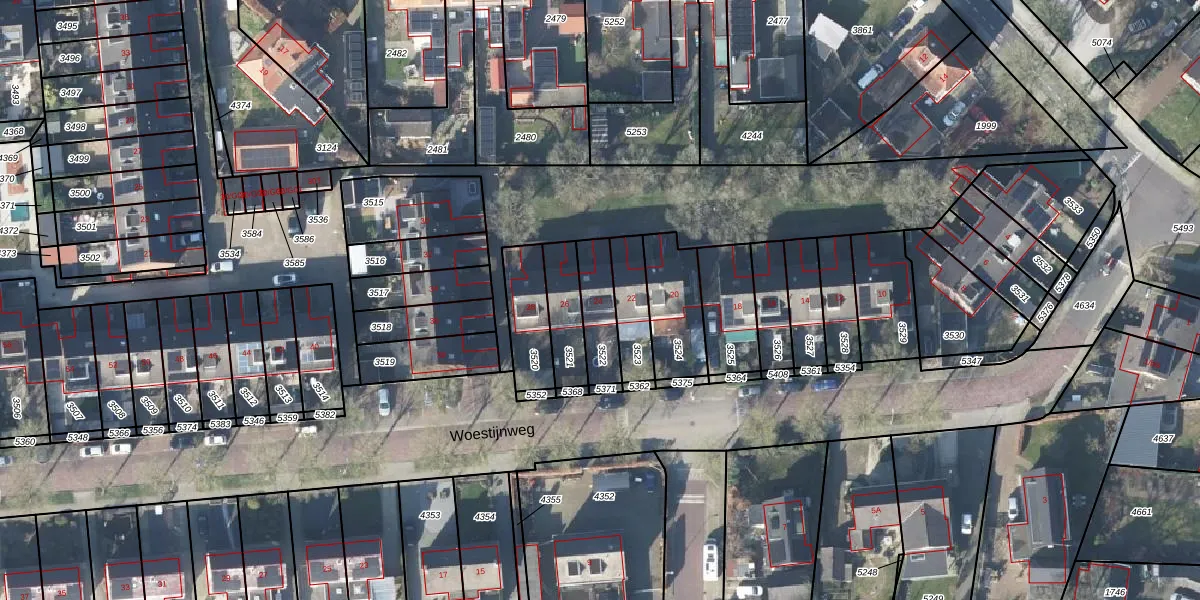 Gebruik de zoekbalk of klik op een perceel voor informatie over de adressen binnen dit perceel.