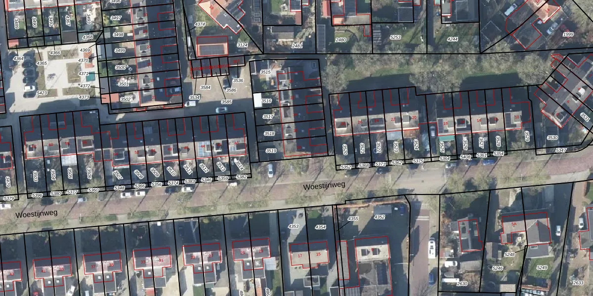 Gebruik de zoekbalk of klik op een perceel voor informatie over de adressen binnen dit perceel.