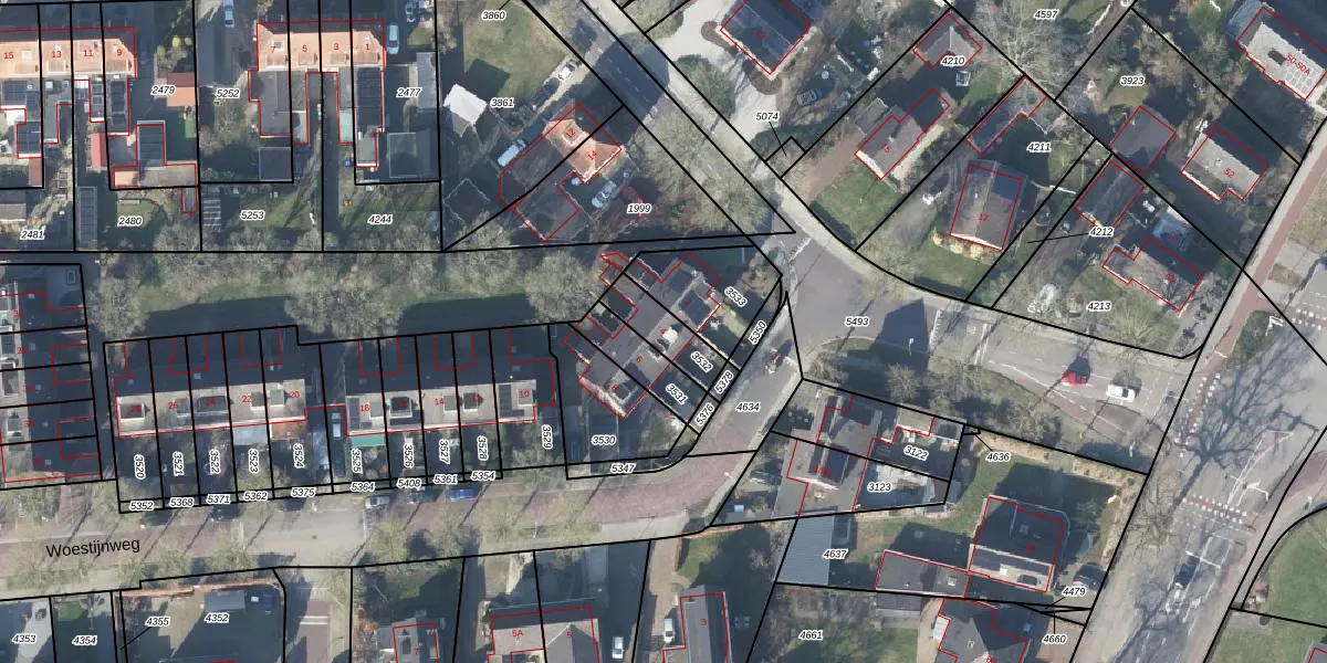 Het perceel waarop Woestijnweg 4 staat heeft een oppervlakte van 119 m². Dit is een middelgroot perceel. De perceeloppervlakte wordt geregistreerd door het Kadaster. Gedetailleerde informatie over de maten van dit perceel kunt u vinden in het rapport Kadastrale kaart met maatvoering van Woestijnweg 4.