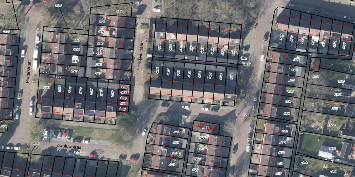 Gebruik de zoekbalk of klik op een perceel voor informatie over de adressen binnen dit perceel.