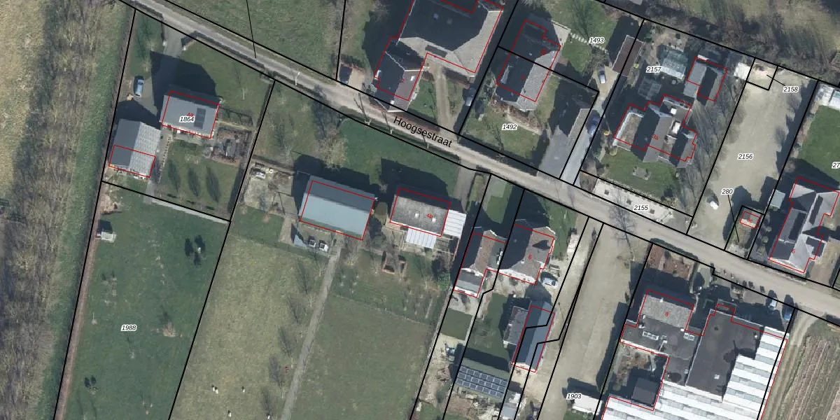 Het perceel waarop Hoogsestraat 4-b staat heeft een oppervlakte van 1,1 ha. Dit is een zeer groot perceel. De perceeloppervlakte wordt geregistreerd door het Kadaster. Gedetailleerde informatie over de maten van dit perceel kunt u vinden in het rapport Kadastrale kaart met maatvoering van Hoogsestraat 4-b.