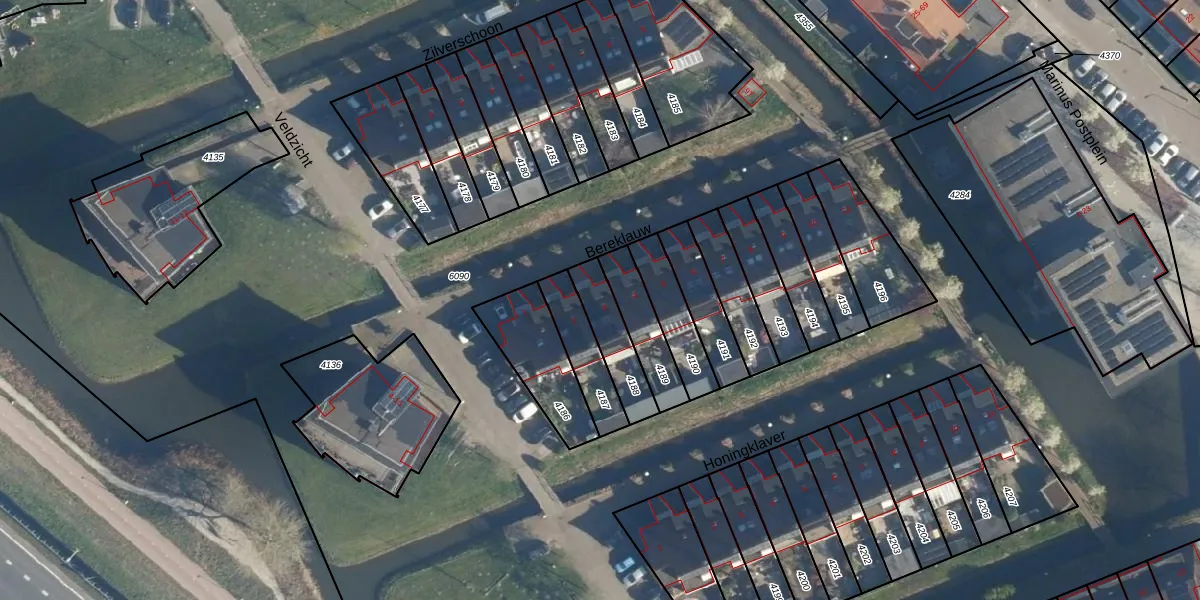 Gebruik de zoekbalk of klik op een perceel voor informatie over de adressen binnen dit perceel.