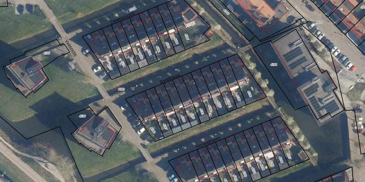 Gebruik de zoekbalk of klik op een perceel voor informatie over de adressen binnen dit perceel.