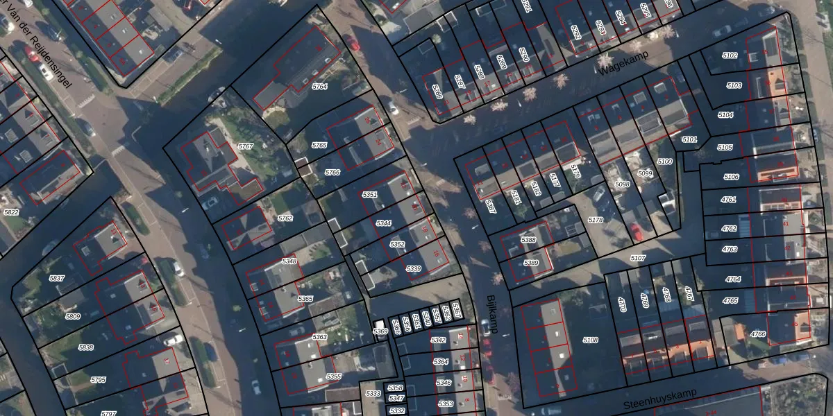 Bijlkamp 20 is gelegen op kadastraal perceel VKB02A5344. Deze kadastrale aanduiding is uniek en wordt gebruikt door het Kadaster om eigendomsrechten en andere zakelijke rechten vast te leggen. Het perceel maakt onderdeel uit van de kadastrale gemeente Valkenburg Zuid-Holland.