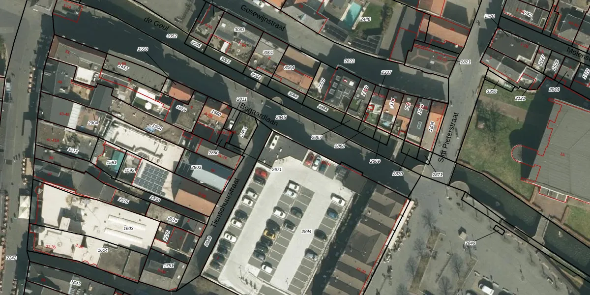 Het perceel waarop Bogaardlaan 10 staat heeft een oppervlakte van 2835 m². Dit is een zeer groot perceel. De perceeloppervlakte wordt geregistreerd door het Kadaster. Gedetailleerde informatie over de maten van dit perceel kunt u vinden in het rapport Kadastrale kaart met maatvoering van Bogaardlaan 10.