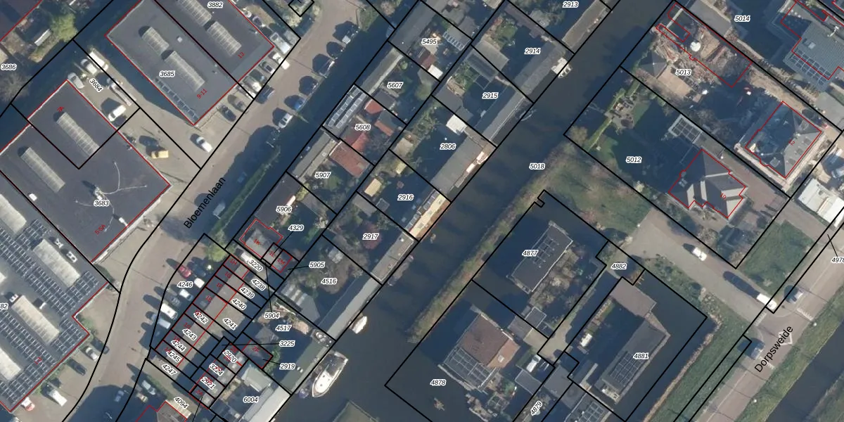 Gebruik de zoekbalk of klik op een perceel voor informatie over de adressen binnen dit perceel.