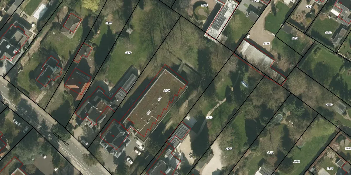Het perceel waarop Broekhem 20-S staat heeft een oppervlakte van 3341 m². Dit is een zeer groot perceel. De perceeloppervlakte wordt geregistreerd door het Kadaster. Gedetailleerde informatie over de maten van dit perceel kunt u vinden in het rapport Kadastrale kaart met maatvoering van Broekhem 20-S.
