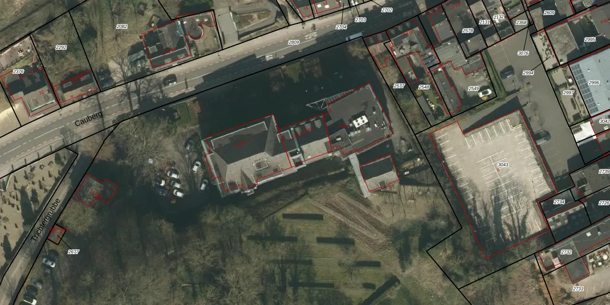 Het perceel waarop Cauberg 19-25 staat heeft een oppervlakte van 4,3 ha. Dit is een zeer groot perceel. De perceeloppervlakte wordt geregistreerd door het Kadaster. Gedetailleerde informatie over de maten van dit perceel kunt u vinden in het rapport Kadastrale kaart met maatvoering van Cauberg 19-25.