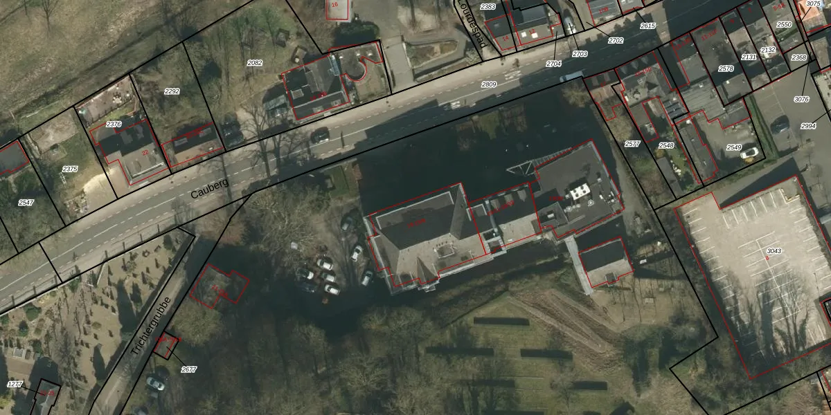 Het perceel waarop Cauberg 19 staat heeft een oppervlakte van 4,3 ha. Dit is een zeer groot perceel. De perceeloppervlakte wordt geregistreerd door het Kadaster. Gedetailleerde informatie over de maten van dit perceel kunt u vinden in het rapport Kadastrale kaart met maatvoering van Cauberg 19.