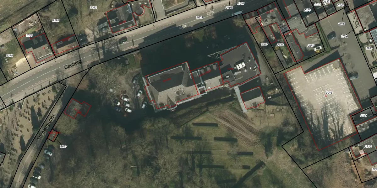 Het perceel waarop Cauberg 19-37 staat heeft een oppervlakte van 4,3 ha. Dit is een zeer groot perceel. De perceeloppervlakte wordt geregistreerd door het Kadaster. Gedetailleerde informatie over de maten van dit perceel kunt u vinden in het rapport Kadastrale kaart met maatvoering van Cauberg 19-37.