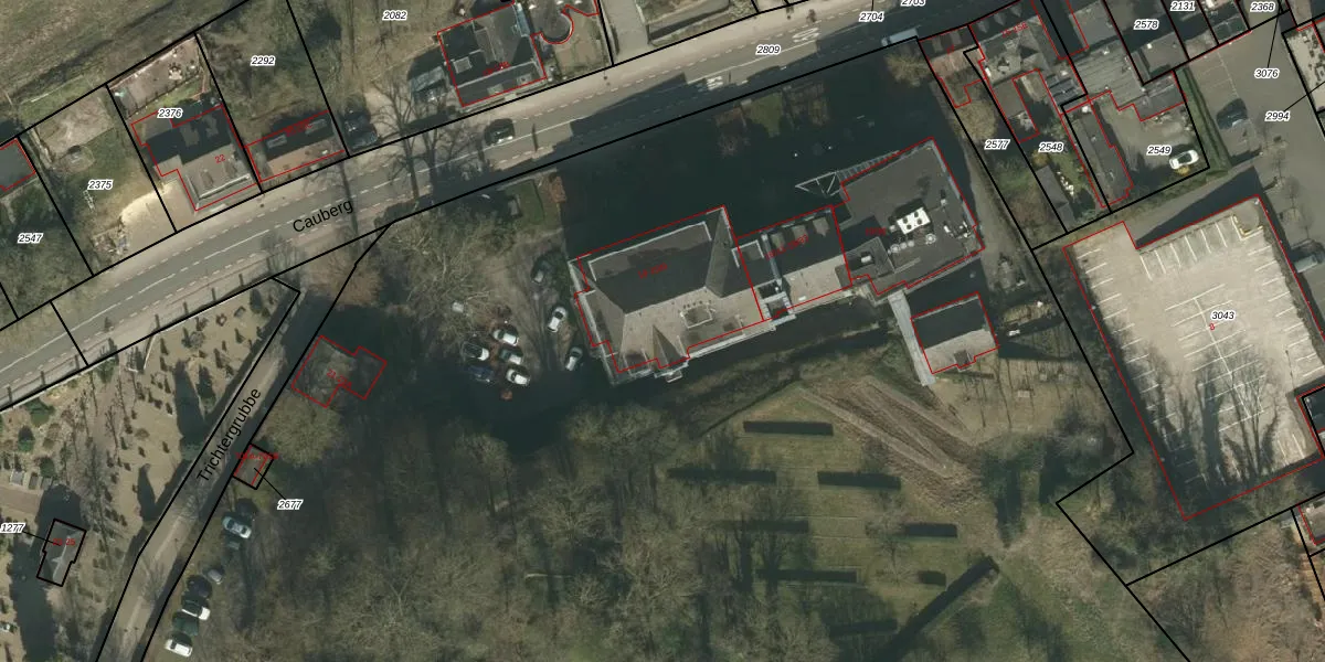 Het perceel waarop Cauberg 19-35 staat heeft een oppervlakte van 4,3 ha. Dit is een zeer groot perceel. De perceeloppervlakte wordt geregistreerd door het Kadaster. Gedetailleerde informatie over de maten van dit perceel kunt u vinden in het rapport Kadastrale kaart met maatvoering van Cauberg 19-35.