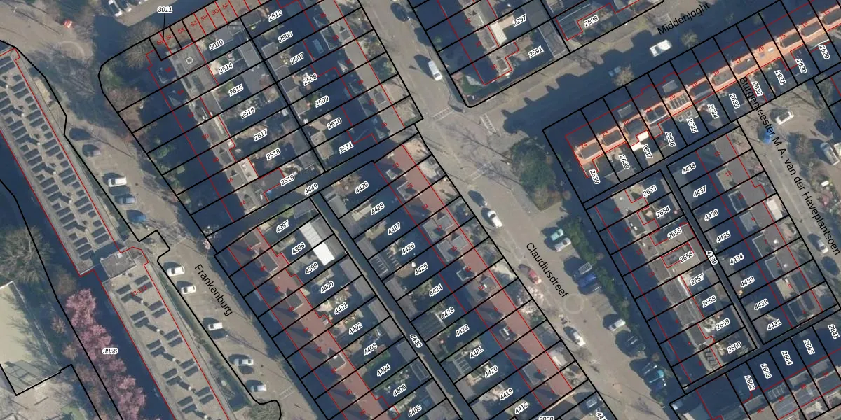 Gebruik de zoekbalk of klik op een perceel voor informatie over de adressen binnen dit perceel.