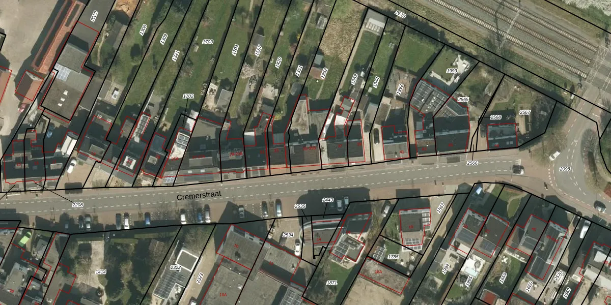 Het perceel waarop Cremerstraat 35-A staat heeft een oppervlakte van 655 m². Dit is een groot perceel. De perceeloppervlakte wordt geregistreerd door het Kadaster. Gedetailleerde informatie over de maten van dit perceel kunt u vinden in het rapport Kadastrale kaart met maatvoering van Cremerstraat 35-A.