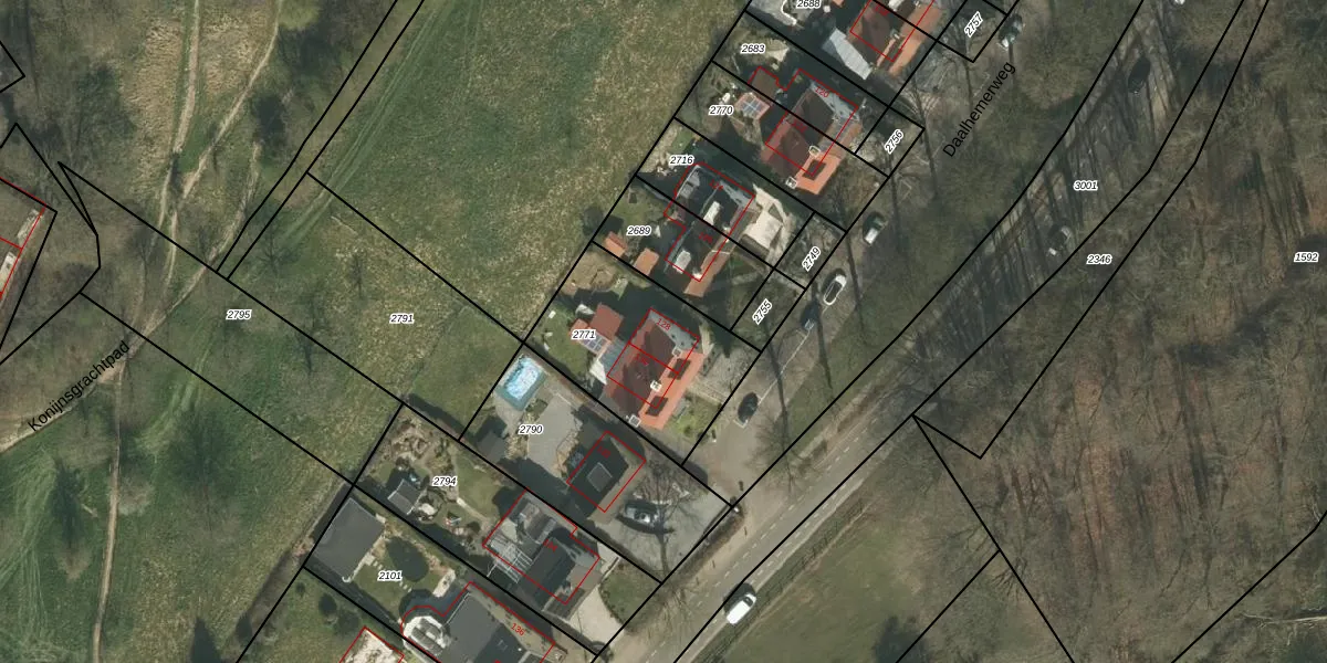 Daalhemerweg 128 is gelegen op kadastraal perceel VKB01B2771. Deze kadastrale aanduiding is uniek en wordt gebruikt door het Kadaster om eigendomsrechten en andere zakelijke rechten vast te leggen. Het perceel maakt onderdeel uit van de kadastrale gemeente Valkenburg Limburg.