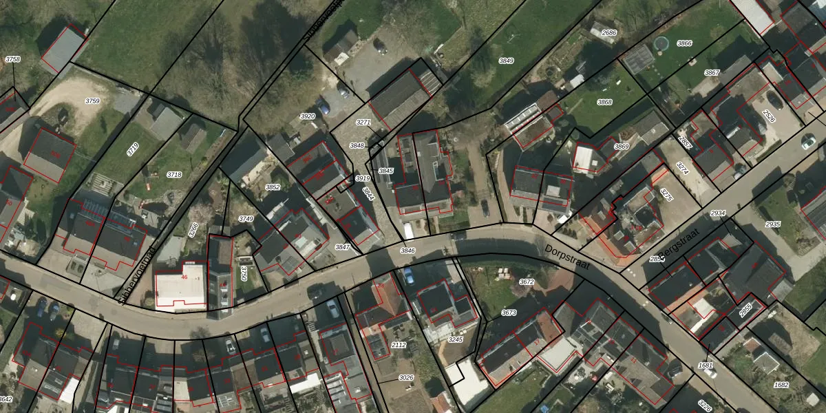 Dorpstraat 36 is gelegen op kadastraal perceel VKB03C3849. Deze kadastrale aanduiding is uniek en wordt gebruikt door het Kadaster om eigendomsrechten en andere zakelijke rechten vast te leggen. Het perceel maakt onderdeel uit van de kadastrale gemeente Oud-Valkenburg.