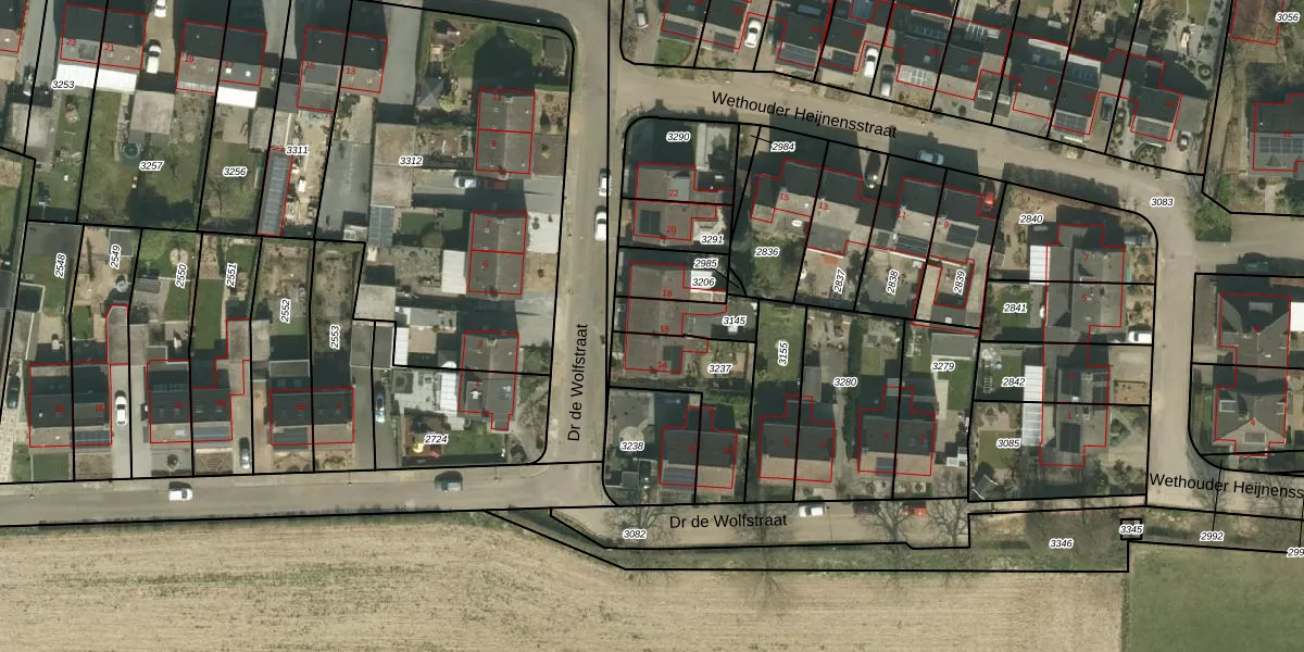 Dr de Wolfstraat 16 is gelegen op kadastraal perceel HHM00A3145. Deze kadastrale aanduiding is uniek en wordt gebruikt door het Kadaster om eigendomsrechten en andere zakelijke rechten vast te leggen. Het perceel maakt onderdeel uit van de kadastrale gemeente Houthem.
