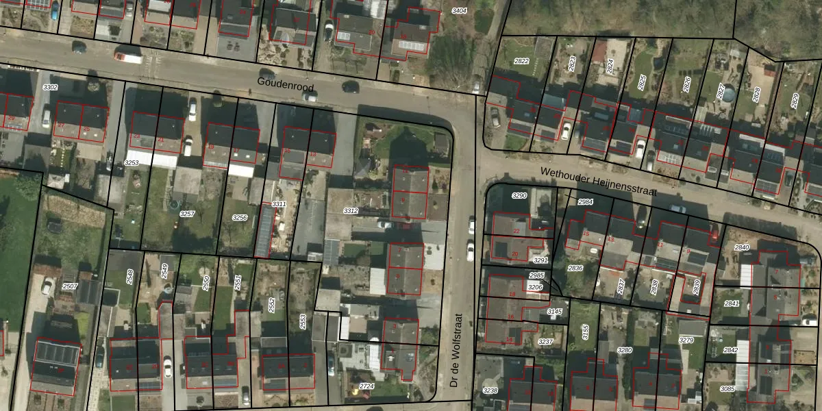Dr de Wolfstraat 9 is gelegen op kadastraal perceel HHM00A3312. Deze kadastrale aanduiding is uniek en wordt gebruikt door het Kadaster om eigendomsrechten en andere zakelijke rechten vast te leggen. Het perceel maakt onderdeel uit van de kadastrale gemeente Houthem.