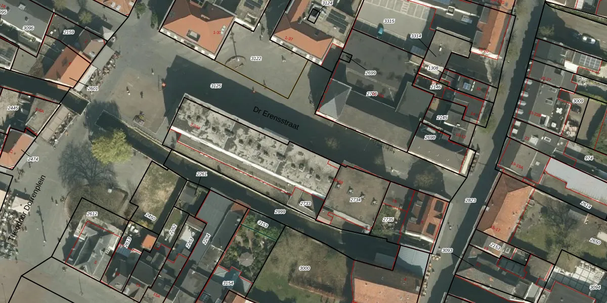 Dr Erensstraat 10 is gelegen op kadastraal perceel VKB01A2733. Deze kadastrale aanduiding is uniek en wordt gebruikt door het Kadaster om eigendomsrechten en andere zakelijke rechten vast te leggen. Het perceel maakt onderdeel uit van de kadastrale gemeente Valkenburg Limburg.