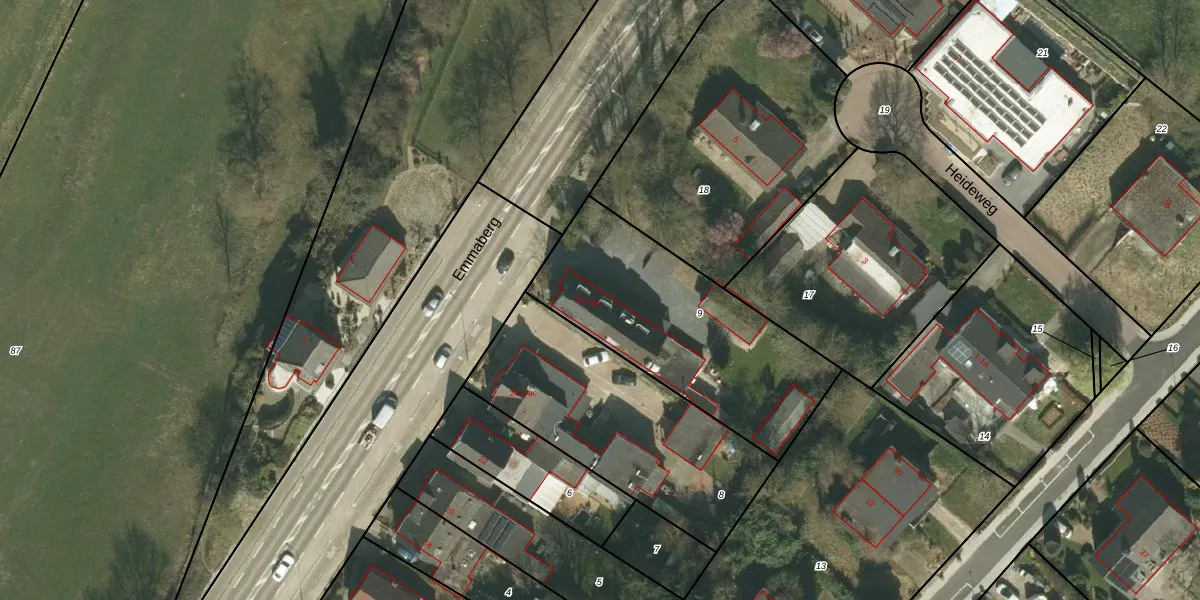 Het perceel waarop Emmaberg 26-E staat heeft een oppervlakte van 957 m². Dit is een groot perceel. De perceeloppervlakte wordt geregistreerd door het Kadaster. Gedetailleerde informatie over de maten van dit perceel kunt u vinden in het rapport Kadastrale kaart met maatvoering van Emmaberg 26-E.