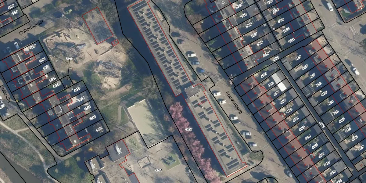 Het perceel waarop Frankenburg 101 staat heeft een oppervlakte van 2812 m². Dit is een zeer groot perceel. De perceeloppervlakte wordt geregistreerd door het Kadaster. Gedetailleerde informatie over de maten van dit perceel kunt u vinden in het rapport Kadastrale kaart met maatvoering van Frankenburg 101.
