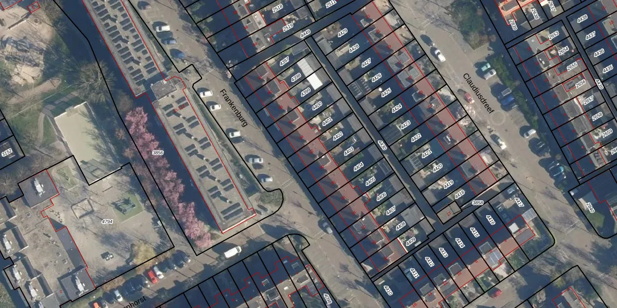 Frankenburg 32 is gelegen op kadastraal perceel VKB02A4402. Deze kadastrale aanduiding is uniek en wordt gebruikt door het Kadaster om eigendomsrechten en andere zakelijke rechten vast te leggen. Het perceel maakt onderdeel uit van de kadastrale gemeente Valkenburg Zuid-Holland.