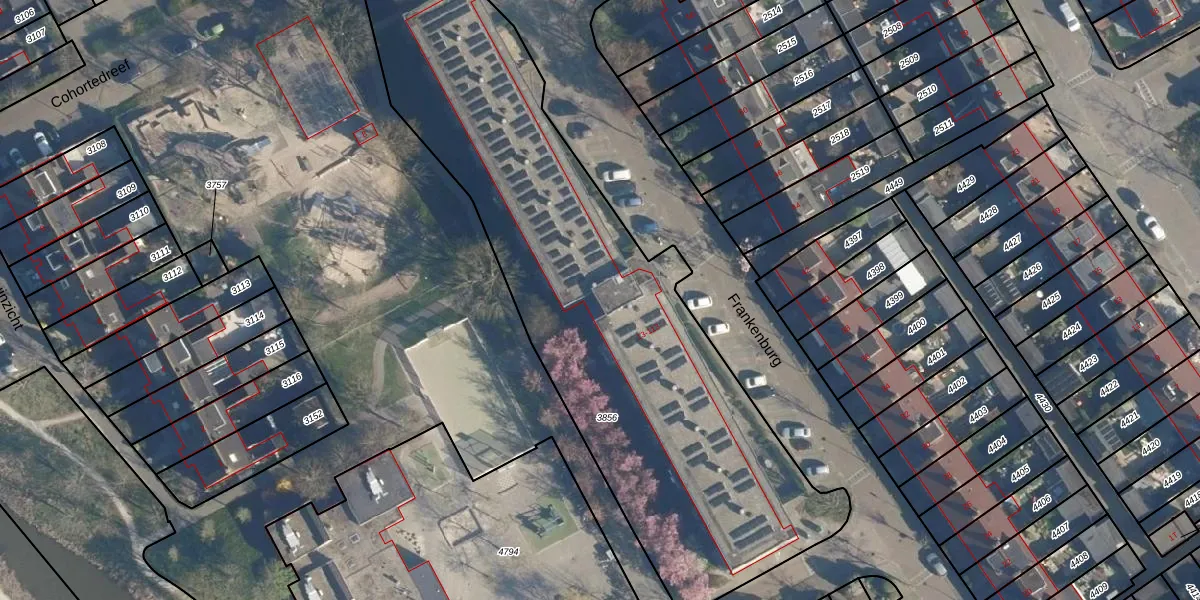 Het perceel waarop Frankenburg 55 staat heeft een oppervlakte van 2812 m². Dit is een zeer groot perceel. De perceeloppervlakte wordt geregistreerd door het Kadaster. Gedetailleerde informatie over de maten van dit perceel kunt u vinden in het rapport Kadastrale kaart met maatvoering van Frankenburg 55.